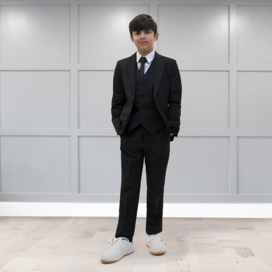 We carry a decent range of boys suits available in black, white, blue and greys - Eloquently designed to fit and feel comfortable for all events. Available in quality stretch material and adjustable pants